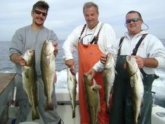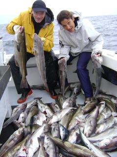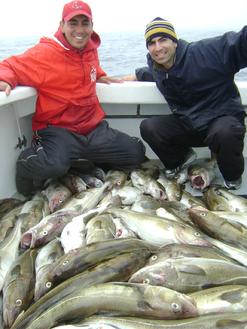 A typical catch can vary greatly with each charter. Each days catch varies with the effort of each group, fishing conditions and the amount of cod and haddock in the area for that day. As observed, it is always 2 fishermen within the charter group that catch 80% of the fish, with that said pay close attention to what your neighbor is doing and pay close attention to what we tell you before we arrive at the fishing grounds and you can help add to the catch. We fish almost every day and know what will work best for you.